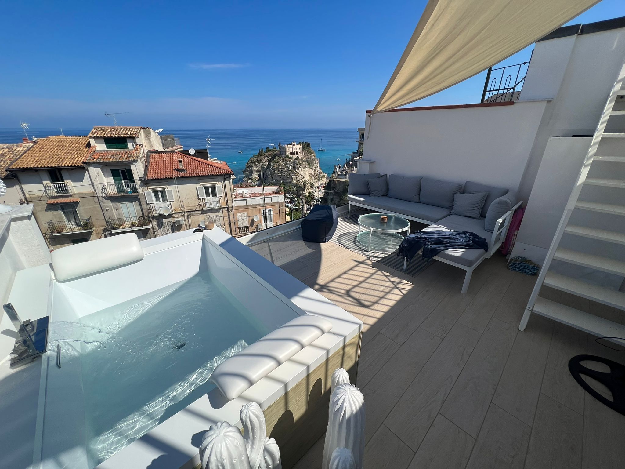 The apartment has a fully equipped kitchen, dining area, a terrace with a jacuzzi and lounge, sun terrace at the top with two sunbeds, washing machine, dishwasher and a fridge.